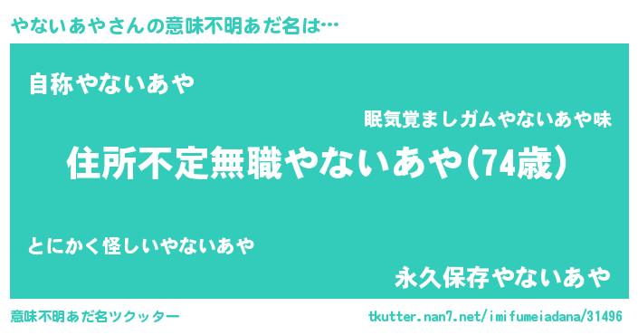 | 料理風あだ名 | 『やないあやのカルパッチョ風』 |