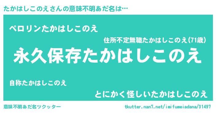 | ヘコむあだ名 | 『たかはしこのえ(笑)』『たかにー』 |