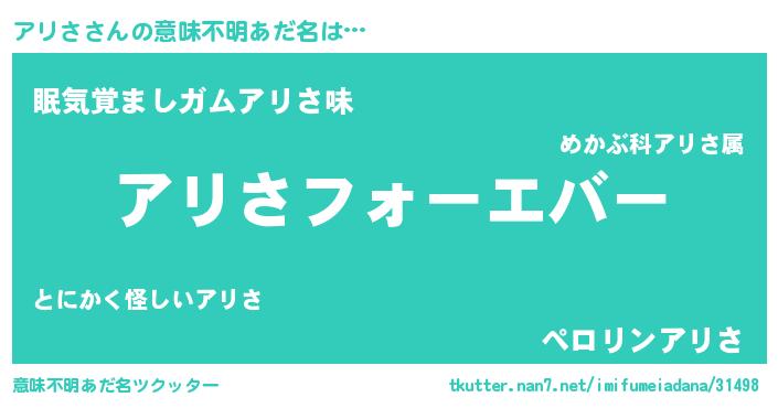 | ヒーロー風カッコイイあだ名 | 『ウルトラアリさマン』『スーパーアリサ』 |