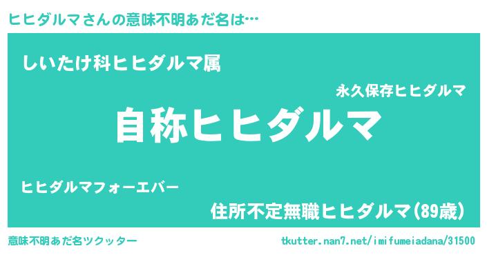 | 男性向けラノベタイトル風あだ名 | 『Re:ヒヒダルマから始める異世界生活』 |