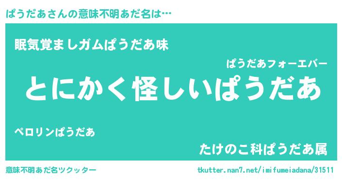 | 女子向けラノベタイトル風あだ名 | 『ぱうだあの卵を拾いまして』 |