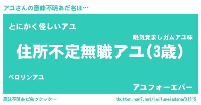 | ヘコむあだ名 | 『アユお』『つくし』『アユふぇ~』 |