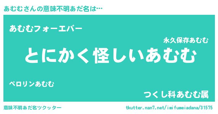 | 男性向けラノベタイトル風あだ名 | 『ダンジョンにあむむを求めるのは間違っているだろうか』 |