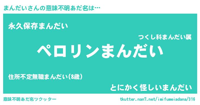 | 胡散臭い通販商品みたいなあだ名 | 『億万長者になれるブレスレット…その名も「まんだい」』 |