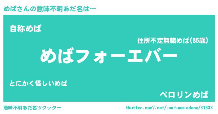 | ヒーロー風カッコイイあだ名 | 『ウルトラめばマン』『サイバー戦士メバ』 |
