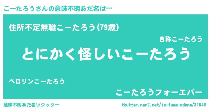 | ヘコむあだ名 | 『こーを』『なまこ酢』『こーもー』 |