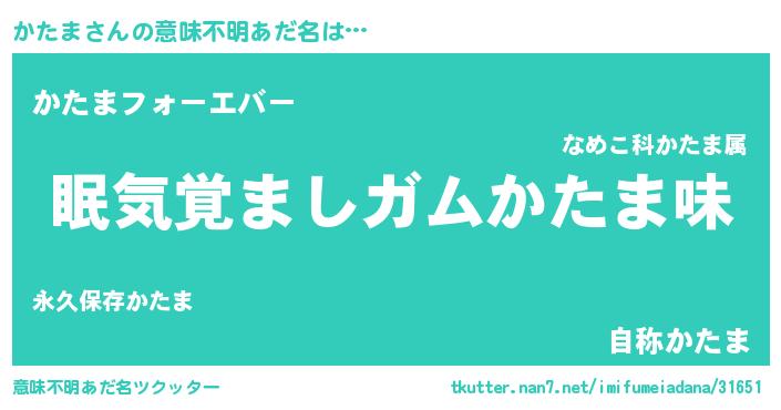 | 女子向けラノベタイトル風あだ名 | 『かたま夫妻のなれそめ』『闇のかたま』 |