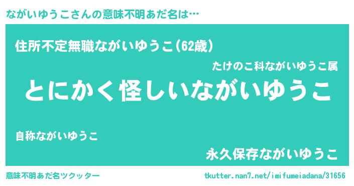 | 男性向けラノベタイトル風あだ名 | 『ながいゆうこの嫁は女の子じゃないと思った?』 |