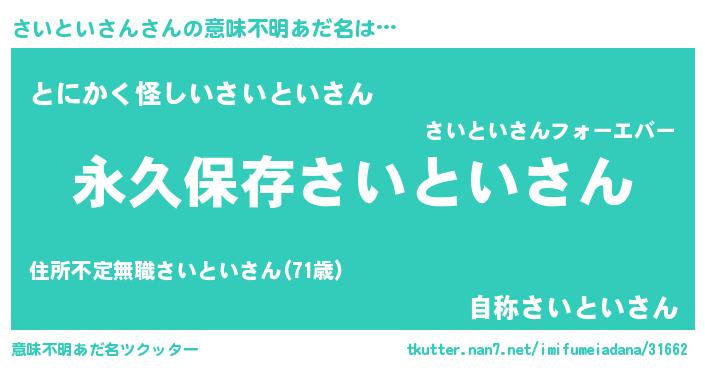 | ヘコむあだ名 | 『さいといさん(笑)』『さいお』 |