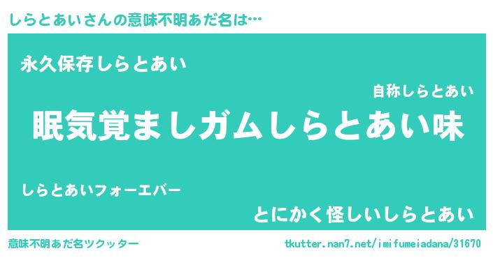 | 男性向けラノベタイトル風あだ名 | 『しらとあいに滅ぼされるだけの簡単なお仕事です』 |