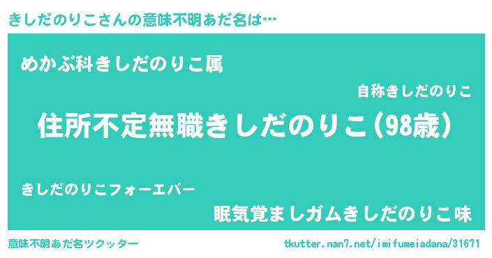 | 男性向けラノベタイトル風あだ名 | 『魔弾の王ときしだのりこ』 |