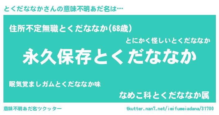 | 胡散臭い通販商品みたいなあだ名 | 『絶対に幸福をもたらす健康食品…その名も「とくだななか」』 |