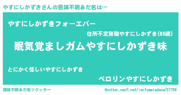 | 欧米人風あだ名 | 『ダニエルやすにしかずき』 |