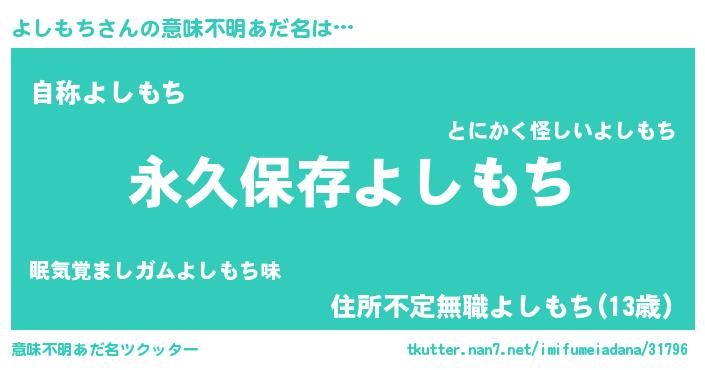 | 男性向けラノベタイトル風あだ名 | 『よしもちという概念が存在しない退屈な世界 』 |