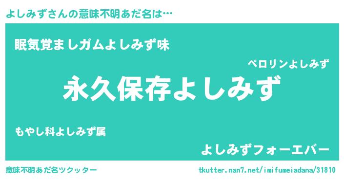 | 胡散臭い通販商品みたいなあだ名 | 『絶対に幸福をもたらす水素水…その名も「よしみず」』 |