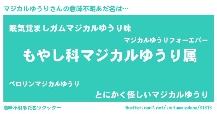 | 男性向けラノベタイトル風あだ名 | 『転生したらマジカルゆうりだった件』 |