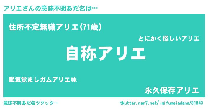 | 男性向けラノベタイトル風あだ名 | 『Re:アリエから始める異世界生活』 |