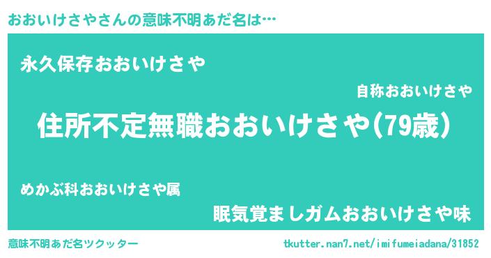 | 胡散臭い通販商品みたいなあだ名 | 『世界中を虜にした世界で10本だけ現存している希少なブランデー…その名も「おおいけさや」』 |