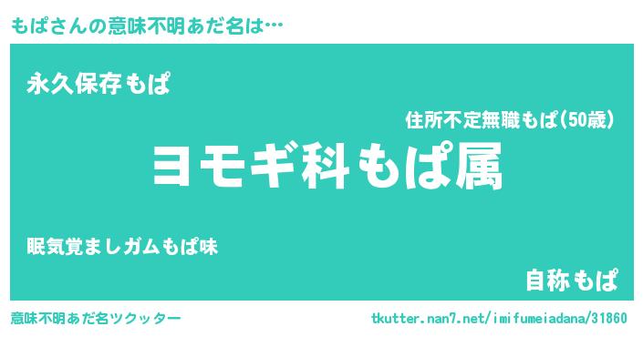 | ヘコむあだ名 | 『もぱ(爆)』『もぱっぺ』『つくし』 |