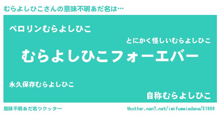 | 肩書あだ名 | 『むらよしひこ総理大臣』 |