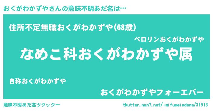 | 料理風あだ名 | 『おくがわかずやごはん』 |