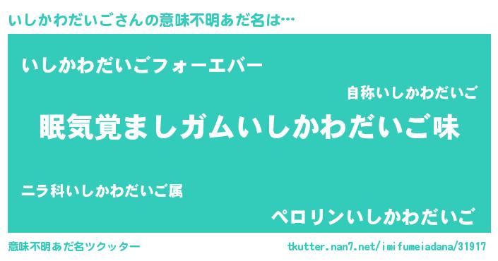 | 欧米人風あだ名 | 『アンジェラ・いしかわだいご』 |