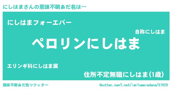 | ポケモン風あだ名 | 『ニシチュウ』『ニシハダネ』 |