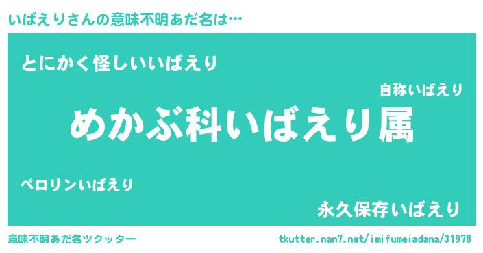 | 胡散臭い通販商品みたいなあだ名 | 『信頼と実績のサプリメント…その名も「いばえり」』 |