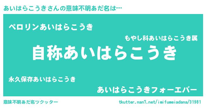 | 肩書あだ名 | 『あいはらこうき総統』 |