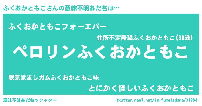 | ヒーロー風カッコイイあだ名 | 『スーパーフクオカトモコ』 |