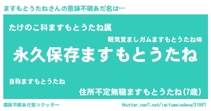 | 胡散臭い通販商品みたいなあだ名 | 『前代未聞の健康食品…その名も「ますもとうたね」』 |