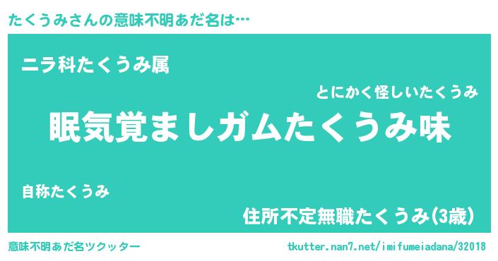 | 男性向けラノベタイトル風あだ名 | 『ノーゲーム・ノータクウミ』 |