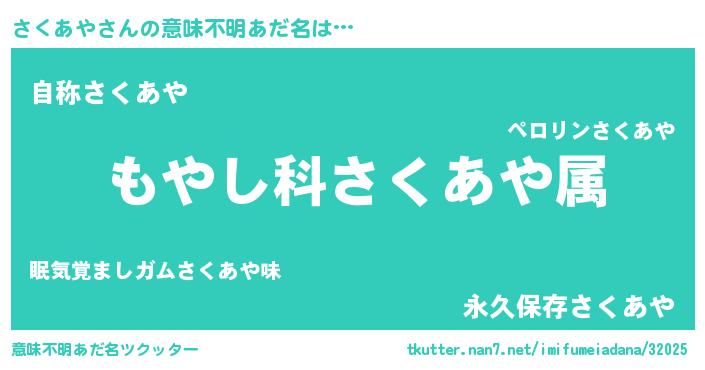 | ヒーロー風カッコイイあだ名 | 『サイバー戦士サクアヤ』『ネオサクアヤ』 |