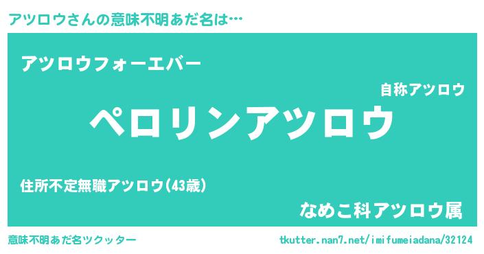| 女子向けラノベタイトル風あだ名 | 『アツロウ姫と円卓の騎士』 |