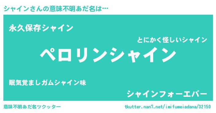 | 男性向けラノベタイトル風あだ名 | 『シャインに滅ぼされるだけの簡単なお仕事です』 |