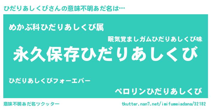 | 男性向けラノベタイトル風あだ名 | 『ひだりあしくびという概念が存在しない退屈な世界 』 |