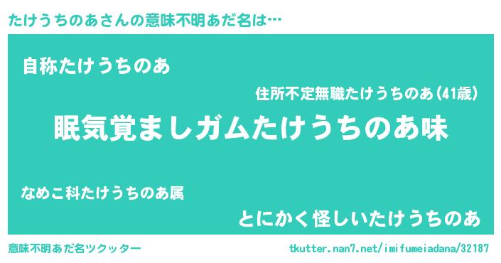 | 肩書あだ名 | 『たけうちのあ教授』『たけうちのあ閣下』 |