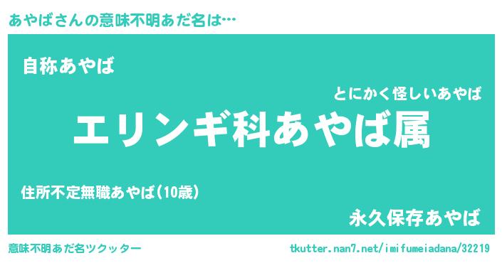 | 男性向けラノベタイトル風あだ名 | 『アヤバスレイヤー』 |