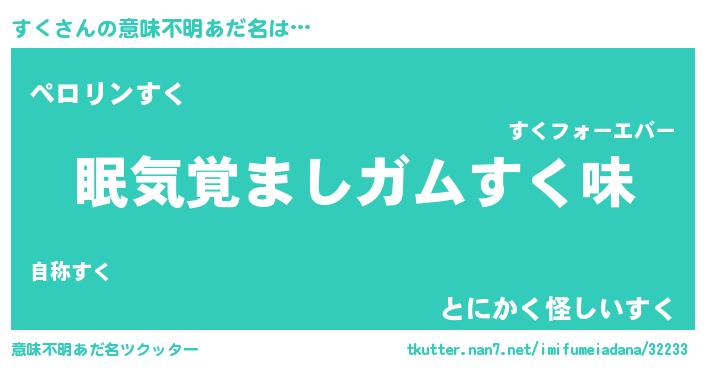| ヒーロー風カッコイイあだ名 | 『正義の使者すく』『スーパースク』 |