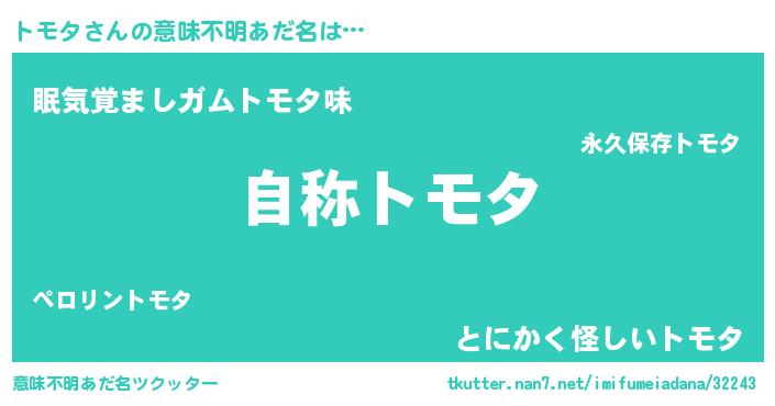 | 男性向けラノベタイトル風あだ名 | 『Re:トモタから始める異世界生活』 |