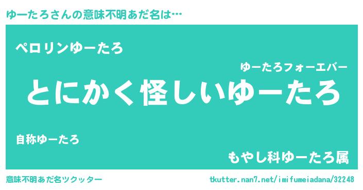| ヘコむあだ名 | 『ゆー太郎』『ゆーもー』『なまこ酢』 |
