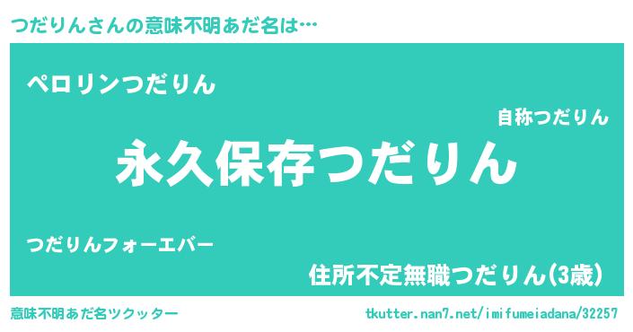 | 男性向けラノベタイトル風あだ名 | 『つだりんという概念が存在しない退屈な世界 』 |