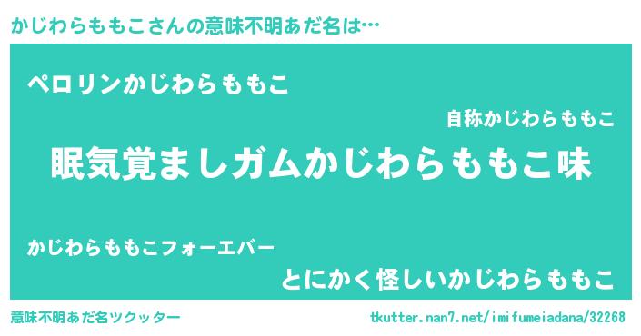 | 男性向けラノベタイトル風あだ名 | 『ノーゲーム・ノーカジワラモモコ』 |