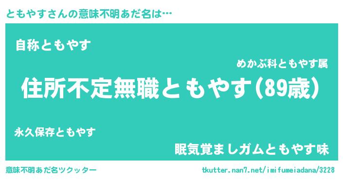| ヘコむあだ名 | 『ともやす(遠い目)』『ともお』 |