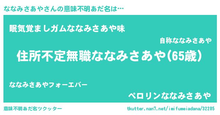 | 男性向けラノベタイトル風あだ名 | 『魔弾の王とななみさあや』 |
