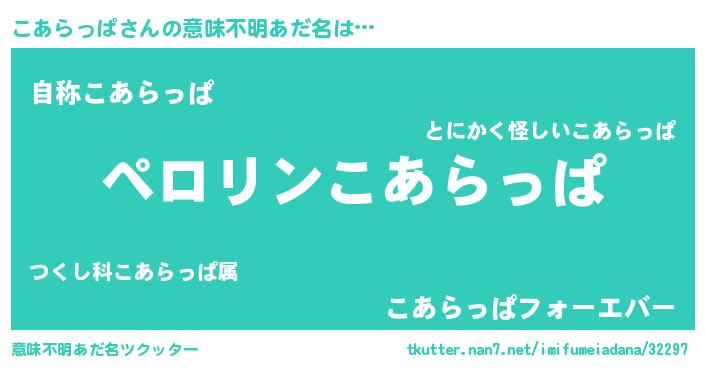 | 男性向けラノベタイトル風あだ名 | 『こあらっぱに滅ぼされるだけの簡単なお仕事です』 |