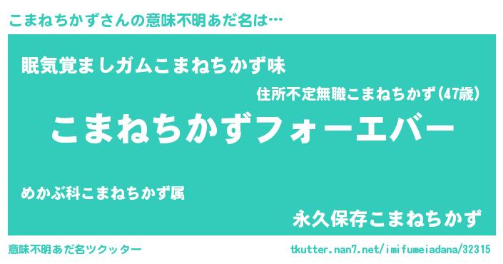 | 欧米人風あだ名 | 『こまねちかずクリステル』 |