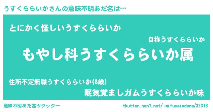 | 欧米人風あだ名 | 『トリンドルうすくららいか』 |