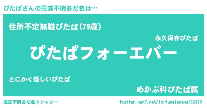 | 男性向けラノベタイトル風あだ名 | 『やはりぴたぱの青春ラブコメはまちがっている 』 |