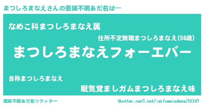| 欧米人風あだ名 | 『まつしろまなえクリステル』 |